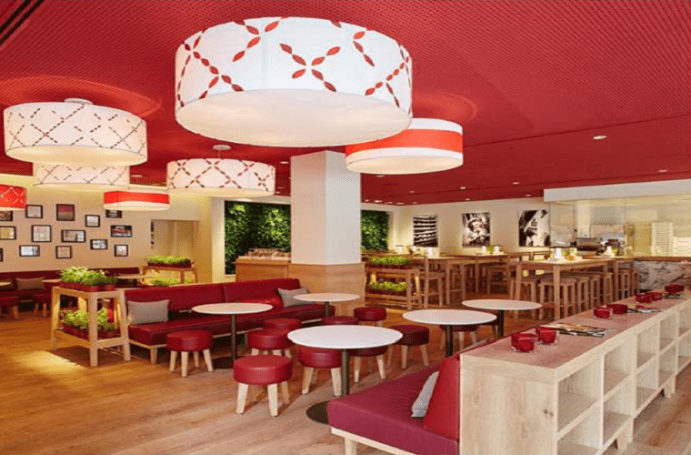 餐桌上的灯是灯光的焦点。Vapiano餐厅的照明起到了提升整体美感的作用,还能产生烛光般的效果。为了方便擦洗,餐厅可以采用玻璃、塑料或金属材质的光洁灯罩。