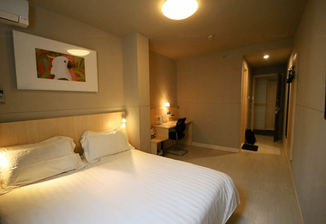 锦江之星酒店的前台采用明暗结合的灯具装饰,在中间顶层区域采用的是嵌入式灯具,与旁边的筒灯遥相呼应,让顾客留下深刻印象。